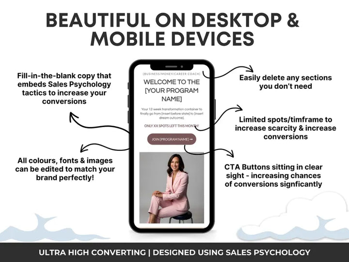 - ✔ Feminine, sleek, and conversion-focused—no fluff, just results!