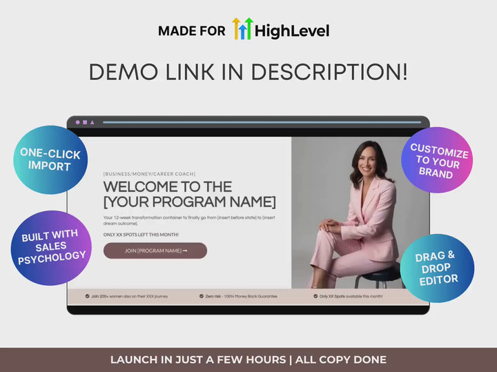 Boost your sales instantly with the GoHighLevel Funnel Template – a professional, high-converting, and customizable funnel designed for coaches and business owners to effortlessly launch their online courses or coaching programs!