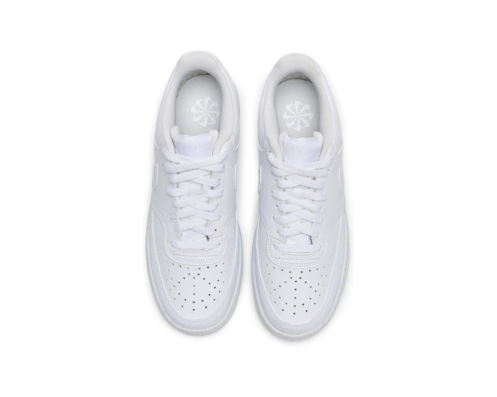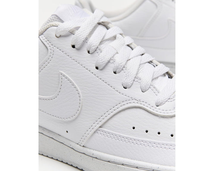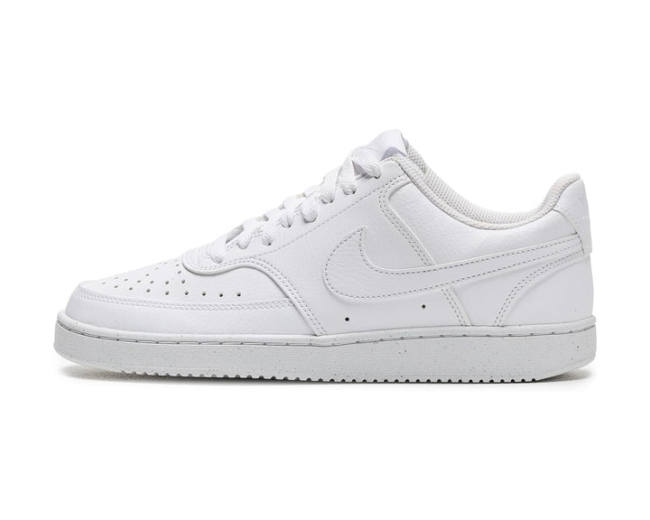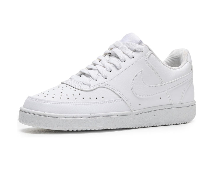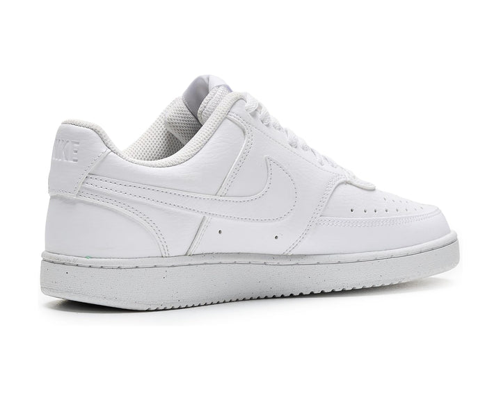 In love with the classic look of '80s basketball but have a thing for the fast-paced culture of today's game? Meet the Nike® Court Vision Low Next Nature. Made from at least 20% recycled materials by weight, its crisp upper and stitched overlays are inspired by the days of hook-shots and tube socks. The padded collar and rubber outsole bring comfort and traction for your world.