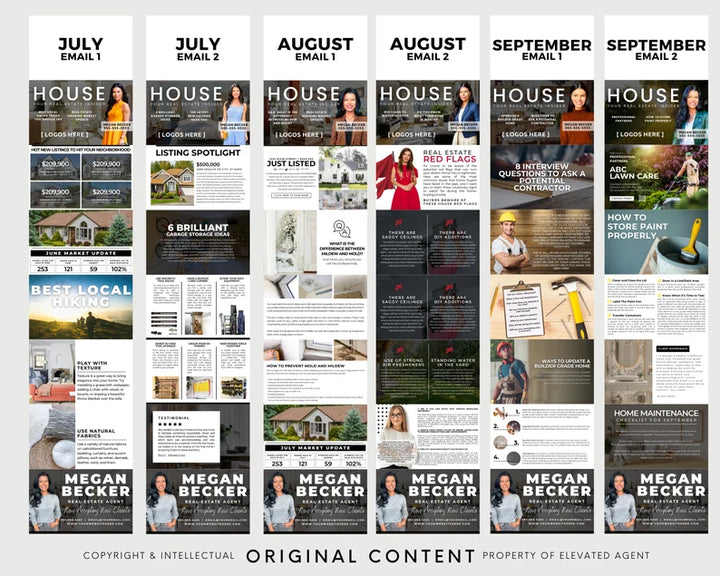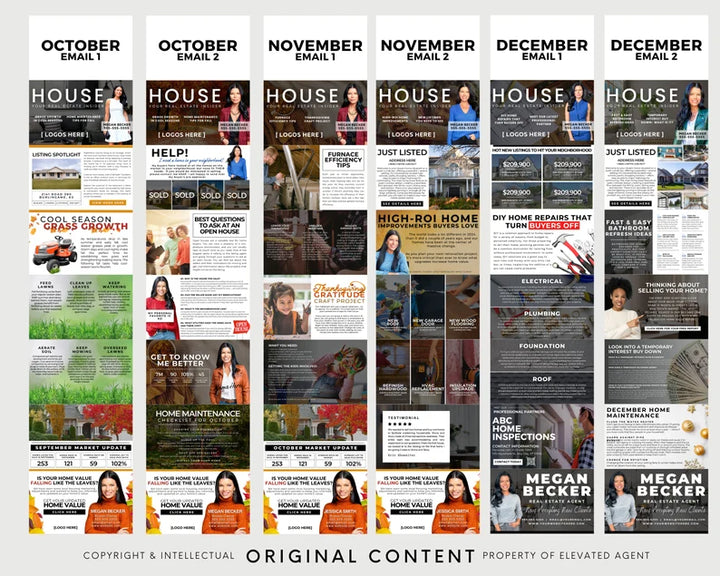 One year’s worth of real estate email marketing templates: consistent, ready-to-send emails that build your brand and nurture client relationships month after month.