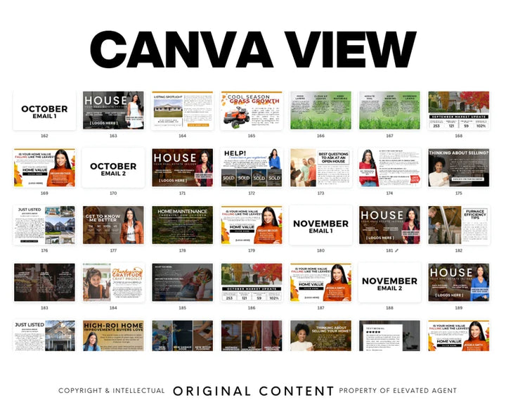 A comprehensive one-year bundle of professionally designed Real Estate Email Templates, perfect for realtors looking to consistently engage clients, showcase properties, and grow their business through effective email marketing. Easily customizable with Canva for a personalized and polished brand presence.
