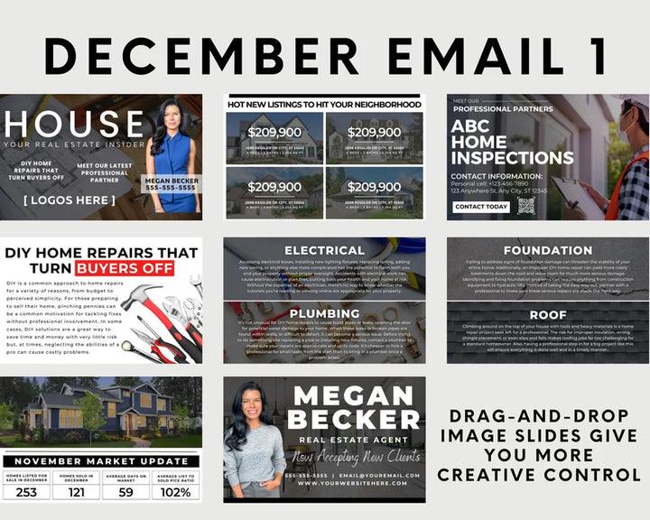 Unlock a full year of expertly crafted Real Estate Email Templates designed to power up your marketing strategy and keep you connected with clients and leads all year round.