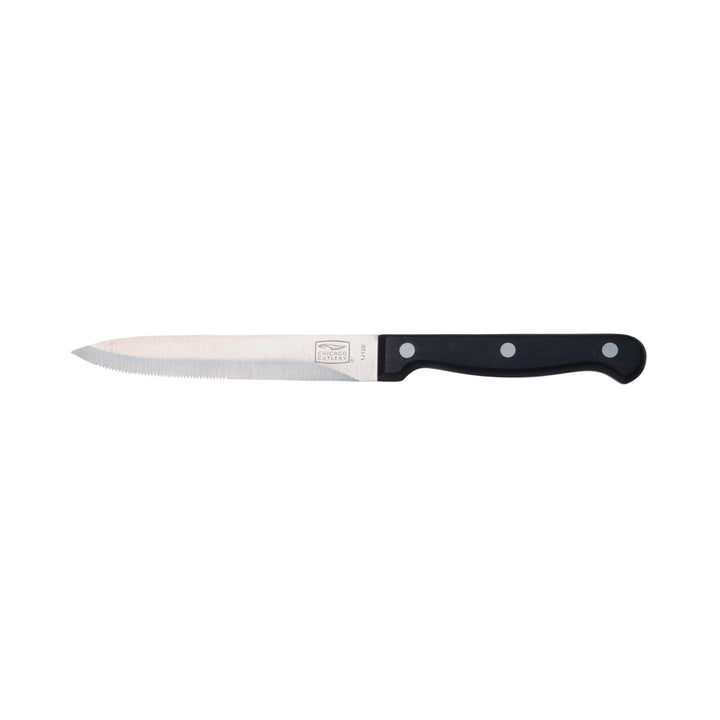 这套 6 把芝加哥刀具牛排刀采用 4.5 英寸不锈钢刀片,26° 锥度,可实现锋利、精准的切割;符合人体工程学的刀柄,握感舒适;全钢结构,经久耐用,可轻松切片,性能持久。 . 商店 24 小时营业。