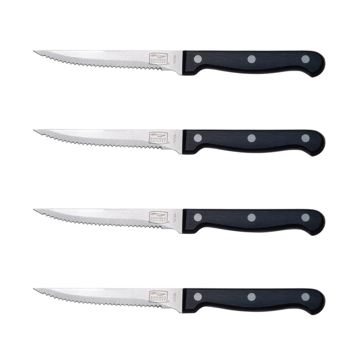 - 4.5 英寸刀片:我们的 4.5 英寸刀片采用优质不锈钢制成,锋利耐用,可轻松切开牛排和其他类型的肉类。