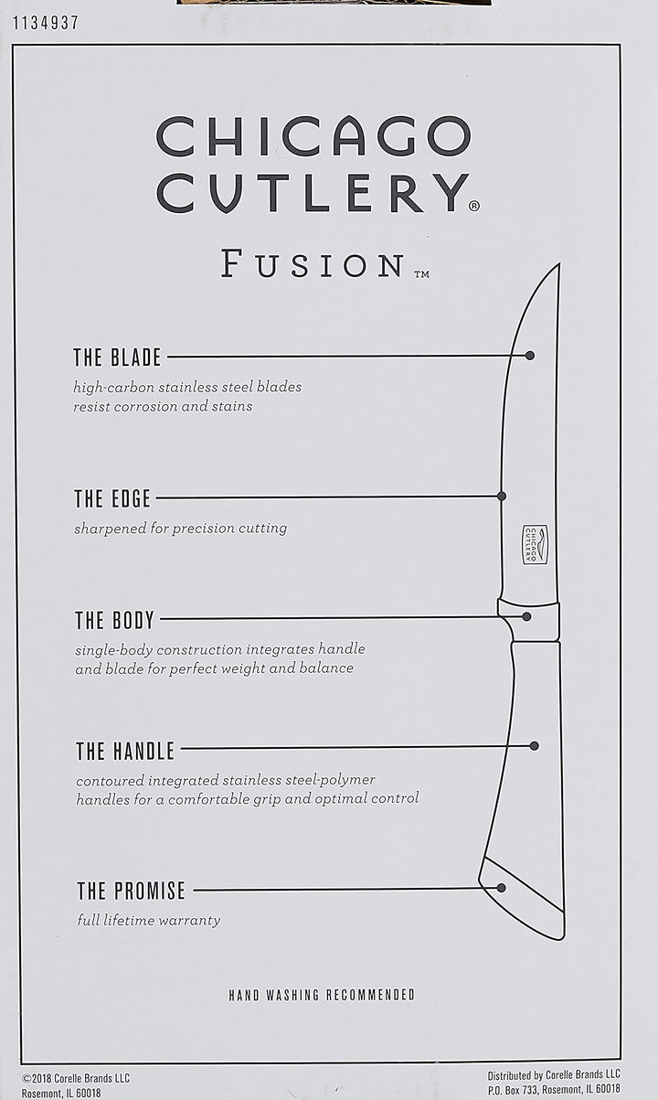 Chicago Cutlery Fusion 6件套锻造高级牛排刀套装,带缓冲手柄和不锈钢刀片,防污、防锈、防腐蚀,厨房刀具