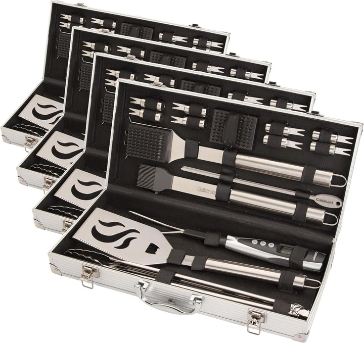 Elevate your grilling game with the Cuisinart 20-Piece Deluxe Grill Tool Set, a complete collection of BBQ essentials in one convenient kit. Crafted from stainless steel, this grill set for outdoor grills offers professional-grade tools, including everything from a chef’s spatula and grill tongs to a high-performance grill cleaner brush and a digital temperature fork with LED light and alarm settings. Perfect for home barbecues, cookouts, or tailgates, these grill tools come packed in a durable aluminum carrying case, ensuring you have top-tier BBQ accessories wherever you go. Whether you're a seasoned chef or a weekend griller, this grill set equips you with all you need for flavorful, perfectly grilled food.